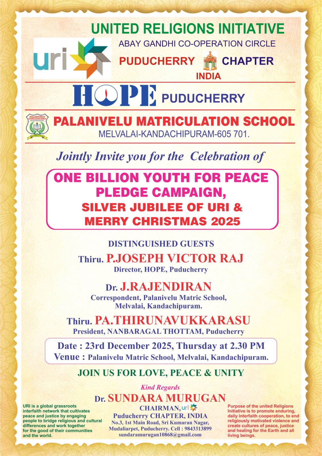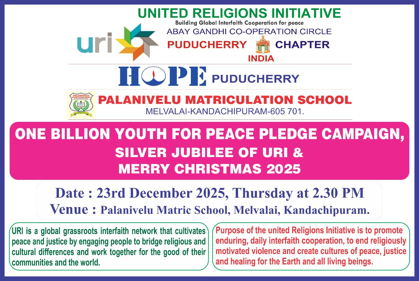 Peace Pledge at Palanivelu Matriculation School, Pondichery.