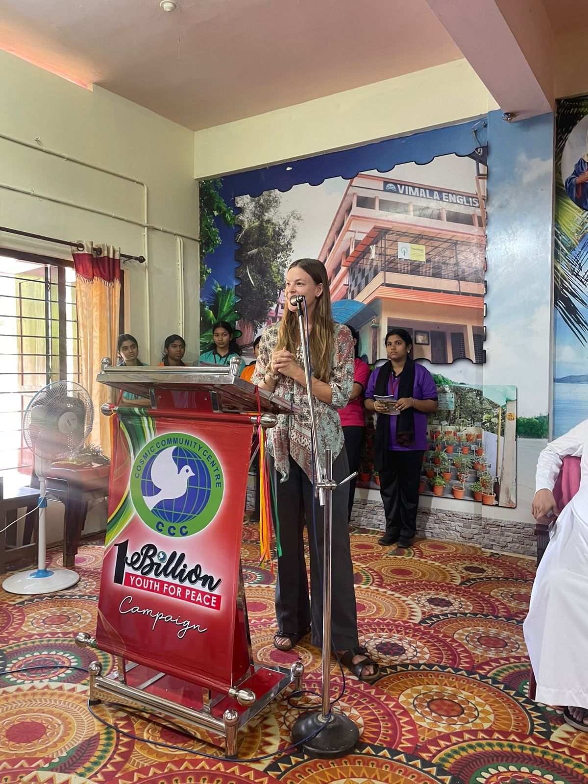 Peace Pledge at Vimala English Vidyalaya, Kalathara, Nedumangadu on 10/11/2025. 565, students and staff of the school took the pledge. the pledge was administered by Ann Mary Joby and repeated by all students and staff.